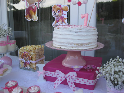 A minha princesa mais nova já fez 7 anos, e como já vai sendo hábito há sempre um tema para a festa escolhido por ela. Desta vez começou por pedir uma festa com o tema fadas depois pensou no tema Skye da patrulha pata e esteve ainda algum tempo (bastante) indecisa. É fácil de adivinhar qual foi o tema escolhido por ela. Mais uma vez escolheu dois bolos (chocolate com recheio de frutos vermelhos e ganache de chocolate e outro de baunilha com recheio duplo de lemon curd e mascarpone com frutos vermelhos)