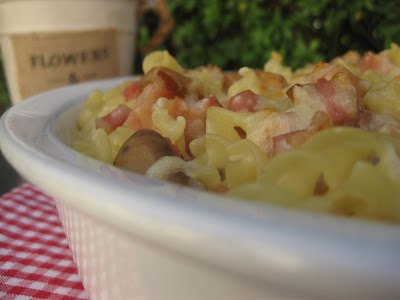 Massa Gratinada com Fiambre, Bacon & Cogumelos