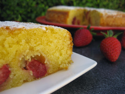 Tinha uns morangos deliciosos que o meu pai me tinha trazido da horta, e também uns belos de uns ovos caseiros. Perfeito para fazer este bolo bem simples, mas que fica uma delícia. Aproveitem o dia de sol e façam este bolinho para o lanche.
